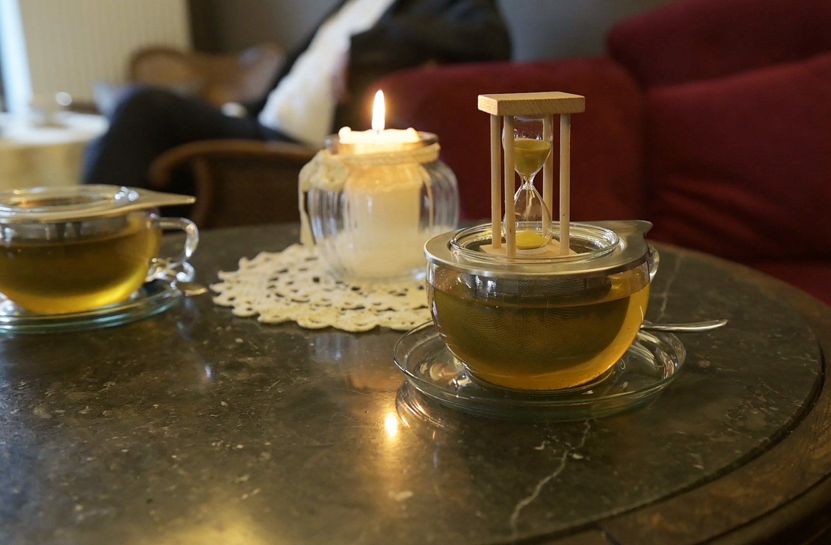 Zelebrieren Sie Ihren Tee, Kaffee oder ein anderes warmes oder kaltes Getränk direkt bei uns - die gemütliche Sitzecke lädt sie zum Verweilen. Und dazu gibt´s selbstgebackenen Kuchen!